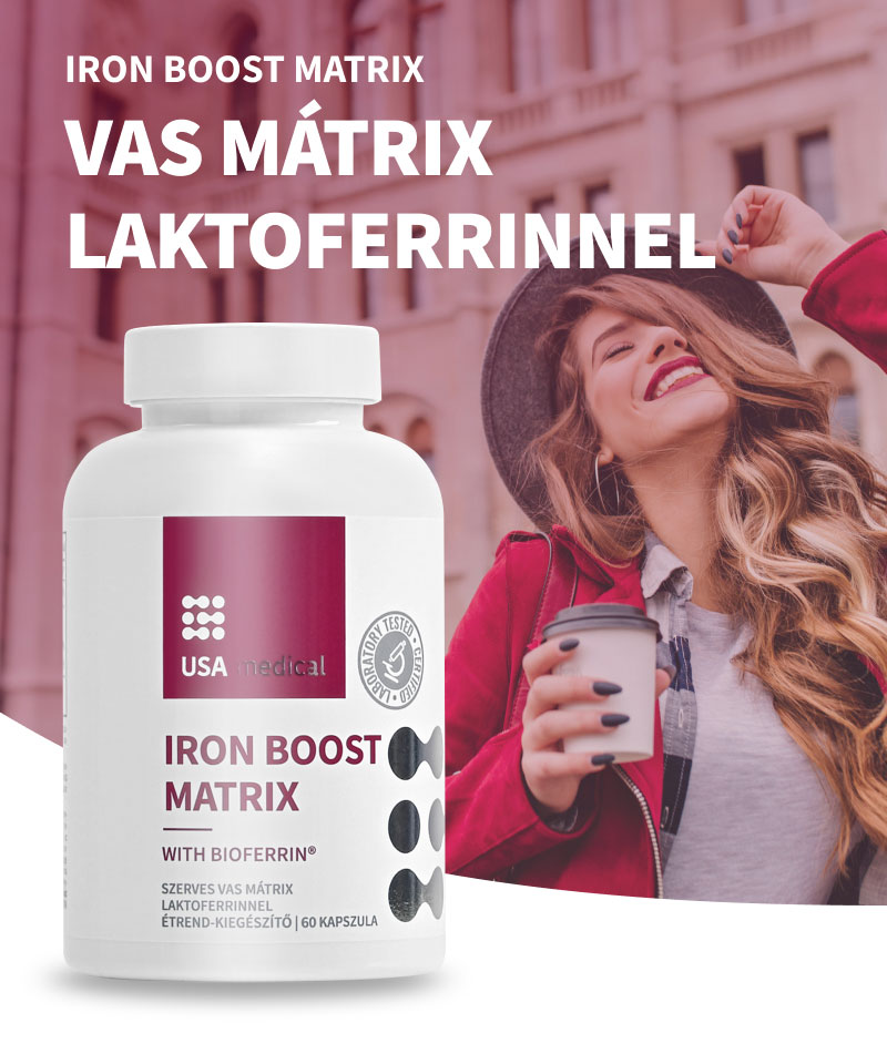 Vagyis a laktoferrin tartalmú élelmiszerek, valamint a vas-biszglicináttal kombinált szabadalmaztatott komponensű Bioferrin® egyaránt elősegítik a vas felszívódását, valamint az ásványi anyagok hasznosulását. Alkalmazd az USA medica Vas Mátrix kapszulát Bioferrin®-nel Te is naponta és szerezd vissza lendületedet!